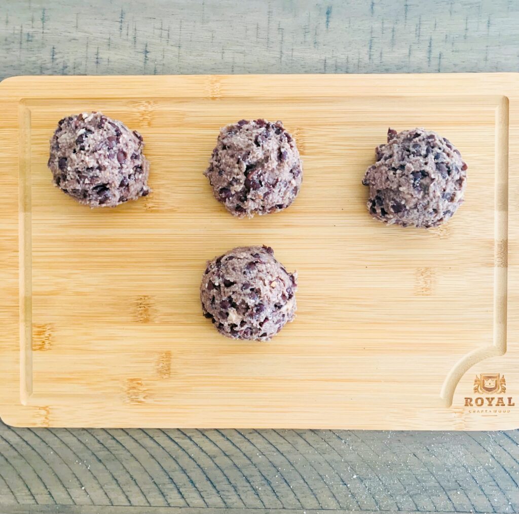 4. Take 2 small-medium scoops into hand and form into a ball (should be able to form 4 balls).